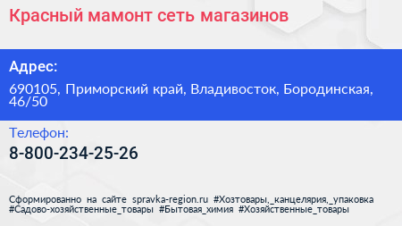 Красный мамонт, сеть магазинов по адресу 690105, Приморский край, Владивосток, Бородинская, 46/50 в дальнейшем Организация, размещена в следующих категориях: