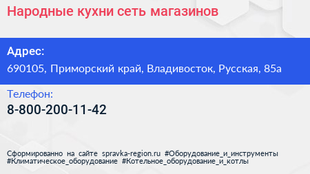 Народные кухни, сеть магазинов по адресу 690105, Приморский край, Владивосток, Русская, 85а в дальнейшем Организация, размещена в следующих категориях: