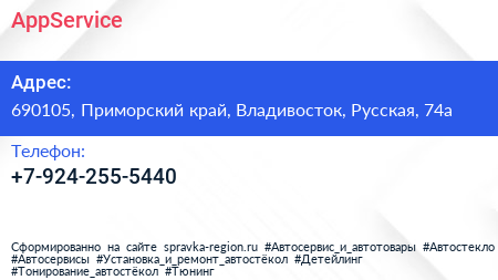 AppService по адресу 690105, Приморский край, Владивосток, Русская, 74а в дальнейшем Организация, размещена в следующих категориях: