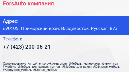 ForsAuto, компания по адресу 690105, Приморский край, Владивосток, Русская, 87а в дальнейшем Организация, размещена в следующих категориях: