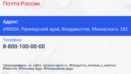 Почта России по адресу 690024, Приморский край, Владивосток, Маковского, 181 в дальнейшем Организация, размещена в следующих категориях: