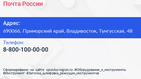 Почта России по адресу 690066, Приморский край, Владивосток, Тунгусская, 48 в дальнейшем Организация, размещена в следующих категориях: