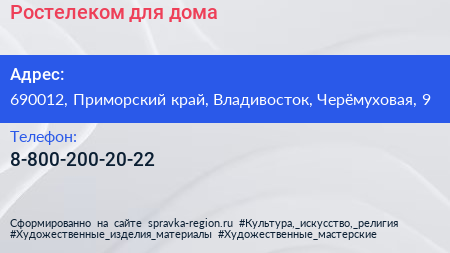 Ростелеком для дома по адресу 690012, Приморский край, Владивосток, Черёмуховая, 9 в дальнейшем Организация, размещена в следующих категориях: