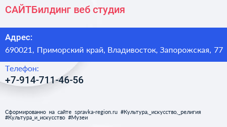 САЙТБилдинг, веб-студия по адресу 690021, Приморский край, Владивосток, Запорожская, 77 в дальнейшем Организация, размещена в следующих категориях: