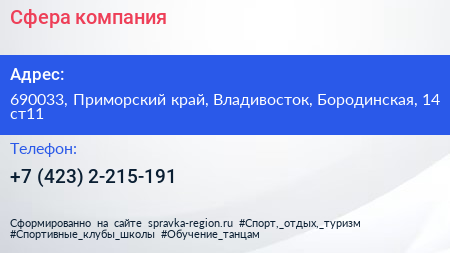 Сфера, компания по адресу 690033, Приморский край, Владивосток, Бородинская, 14 ст11 в дальнейшем Организация, размещена в следующих категориях: