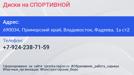 Диски на СПОРТИВНОЙ по адресу 690034, Приморский край, Владивосток, Фадеева, 1а ст2 в дальнейшем Организация, размещена в следующих категориях:
