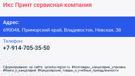 Икс-Принт, сервисная компания по адресу 690048, Приморский край, Владивосток, Невская, 38 в дальнейшем Организация, размещена в следующих категориях: