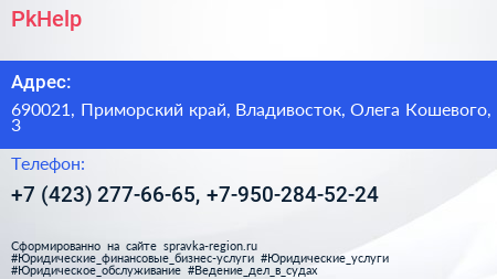 PkHelp по адресу 690021, Приморский край, Владивосток, Олега Кошевого, 3 в дальнейшем Организация, размещена в следующих категориях: