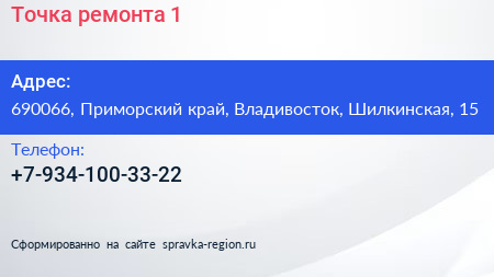 Точка ремонта №1 по адресу 690066, Приморский край, Владивосток, Шилкинская, 15 в дальнейшем Организация, размещена в следующих категориях: