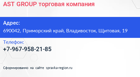 AST-GROUP, торговая компания по адресу 690042, Приморский край, Владивосток, Щитовая, 19 в дальнейшем Организация, размещена в следующих категориях: