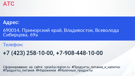 АТС по адресу 690014, Приморский край, Владивосток, Всеволода Сибирцева, 69а в дальнейшем Организация, размещена в следующих категориях: