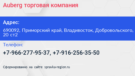 Auberg, торговая компания по адресу 690092, Приморский край, Владивосток, Добровольского, 20 ст2 в дальнейшем Организация, размещена в следующих категориях: