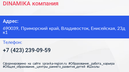 DINAMIKA, компания по адресу 690039, Приморский край, Владивосток, Енисейская, 23д к1 в дальнейшем Организация, размещена в следующих категориях: