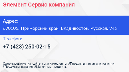 Элемент-Сервис, компания по адресу 690105, Приморский край, Владивосток, Русская, 94а в дальнейшем Организация, размещена в следующих категориях:
