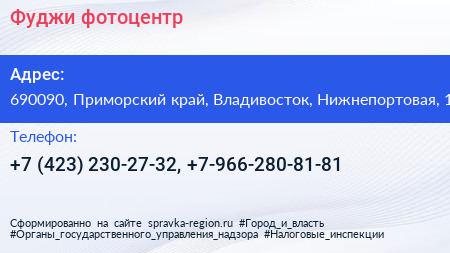 Фуджи, фотоцентр по адресу 690090, Приморский край, Владивосток, Нижнепортовая, 1 в дальнейшем Организация, размещена в следующих категориях: