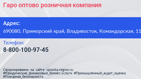 Гаро, оптово-розничная компания по адресу 690080, Приморский край, Владивосток, Командорская, 11 в дальнейшем Организация, размещена в следующих категориях: