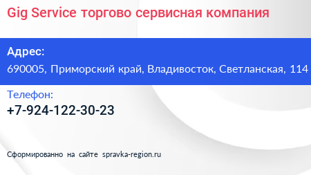 Gig-Service, торгово-сервисная компания по адресу 690005, Приморский край, Владивосток, Светланская, 114 в дальнейшем Организация, размещена в следующих категориях: