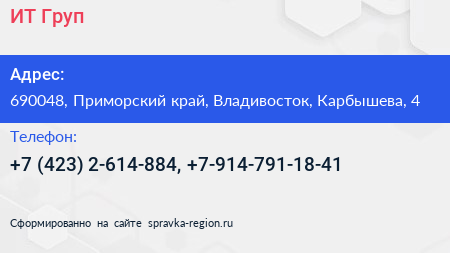 ИТ-Груп по адресу 690048, Приморский край, Владивосток, Карбышева, 4 в дальнейшем Организация, размещена в следующих категориях: