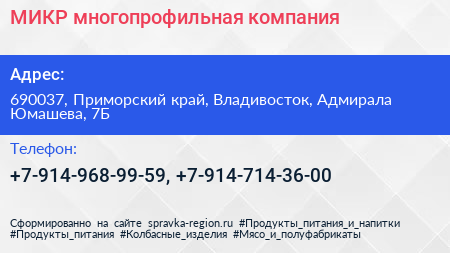 МИКР, многопрофильная компания по адресу 690037, Приморский край, Владивосток, Адмирала Юмашева, 7Б в дальнейшем Организация, размещена в следующих категориях: