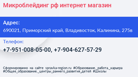 Микроблейдинг.рф, интернет-магазин по адресу 690021, Приморский край, Владивосток, Калинина, 275в в дальнейшем Организация, размещена в следующих категориях: