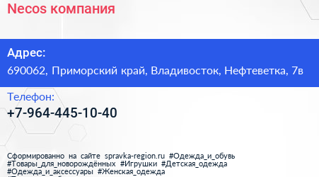 Necos, компания по адресу 690062, Приморский край, Владивосток, Нефтеветка, 7в в дальнейшем Организация, размещена в следующих категориях: