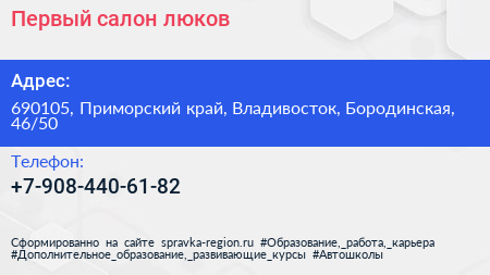 Первый салон люков по адресу 690105, Приморский край, Владивосток, Бородинская, 46/50 в дальнейшем Организация, размещена в следующих категориях: