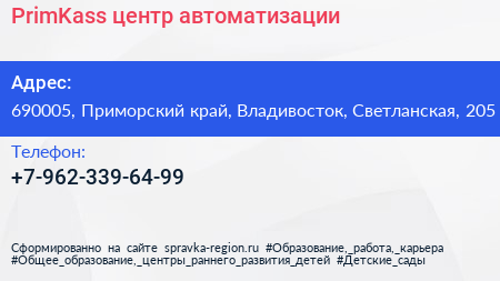 PrimKass, центр автоматизации по адресу 690005, Приморский край, Владивосток, Светланская, 205 в дальнейшем Организация, размещена в следующих категориях: