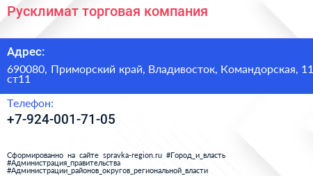 Русклимат, торговая компания по адресу 690080, Приморский край, Владивосток, Командорская, 11 ст11 в дальнейшем Организация, размещена в следующих категориях: