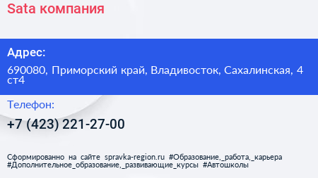 Sata, компания по адресу 690080, Приморский край, Владивосток, Сахалинская, 4 ст4 в дальнейшем Организация, размещена в следующих категориях: