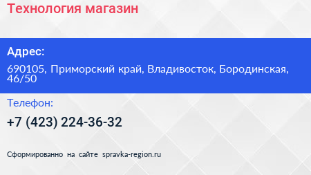 Технология, магазин по адресу 690105, Приморский край, Владивосток, Бородинская, 46/50 в дальнейшем Организация, размещена в следующих категориях: