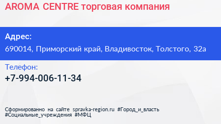 AROMA CENTRE, торговая компания по адресу 690014, Приморский край, Владивосток, Толстого, 32а в дальнейшем Организация, размещена в следующих категориях: