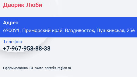 Дворик Люби по адресу 690091, Приморский край, Владивосток, Пушкинская, 25е в дальнейшем Организация, размещена в следующих категориях: