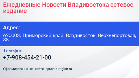 Ежедневные Новости Владивостока, сетевое издание по адресу 690003, Приморский край, Владивосток, Верхнепортовая, 38 в дальнейшем Организация, размещена в следующих категориях: