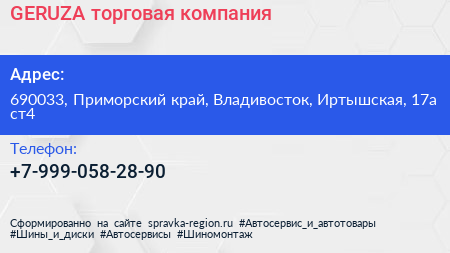 GERUZA, торговая компания по адресу 690033, Приморский край, Владивосток, Иртышская, 17а ст4 в дальнейшем Организация, размещена в следующих категориях:
