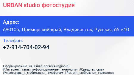 URBAN studio, фотостудия по адресу 690105, Приморский край, Владивосток, Русская, 65 к10 в дальнейшем Организация, размещена в следующих категориях: