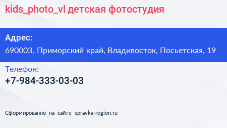 kids_photo_vl, детская фотостудия по адресу 690003, Приморский край, Владивосток, Посьетская, 19 в дальнейшем Организация, размещена в следующих категориях: