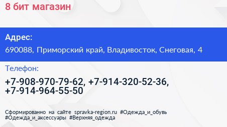 8 бит, магазин по адресу 690088, Приморский край, Владивосток, Снеговая, 4 в дальнейшем Организация, размещена в следующих категориях: