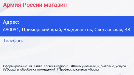 Армия России, магазин по адресу 690091, Приморский край, Владивосток, Светланская, 48 в дальнейшем Организация, размещена в следующих категориях:
