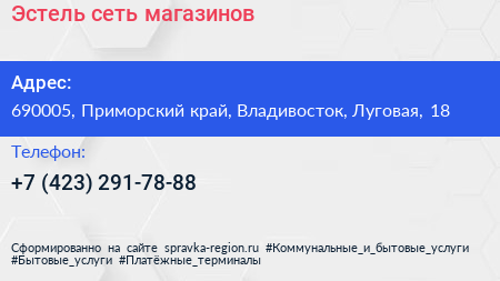 Эстель, сеть магазинов по адресу 690005, Приморский край, Владивосток, Луговая, 18 в дальнейшем Организация, размещена в следующих категориях: