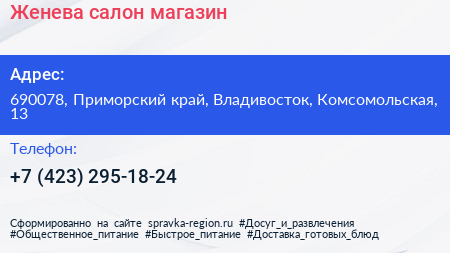 Женева, салон-магазин по адресу 690078, Приморский край, Владивосток, Комсомольская, 13 в дальнейшем Организация, размещена в следующих категориях: