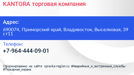 KANTORA, торговая компания по адресу 690074, Приморский край, Владивосток, Выселковая, 39 ст11 в дальнейшем Организация, размещена в следующих категориях: