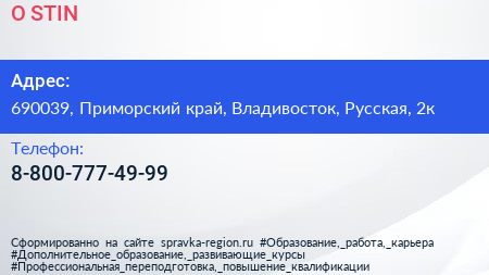 O`STIN по адресу 690039, Приморский край, Владивосток, Русская, 2к в дальнейшем Организация, размещена в следующих категориях: