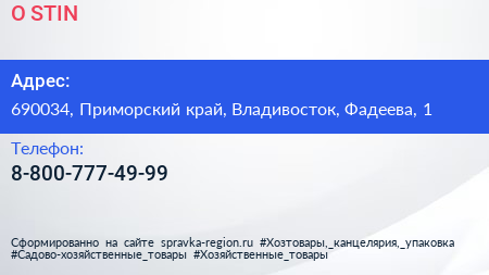 O`STIN по адресу 690034, Приморский край, Владивосток, Фадеева, 1 в дальнейшем Организация, размещена в следующих категориях: