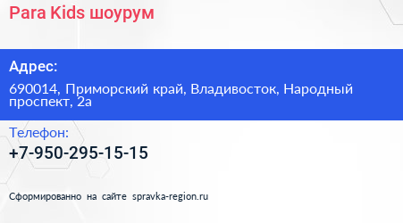 Para Kids, шоурум по адресу 690014, Приморский край, Владивосток, Народный проспект, 2а в дальнейшем Организация, размещена в следующих категориях: