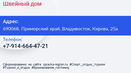 Швейный дом по адресу 690068, Приморский край, Владивосток, Кирова, 25а в дальнейшем Организация, размещена в следующих категориях: