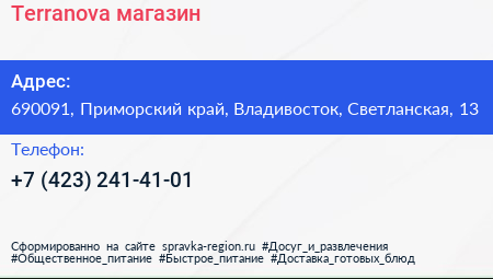 Terranova, магазин по адресу 690091, Приморский край, Владивосток, Светланская, 13 в дальнейшем Организация, размещена в следующих категориях: