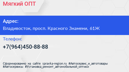Мягкий ОПТ по адресу Владивосток, просп. Красного Знамени, 61Ж в дальнейшем Организация, размещена в следующих категориях: