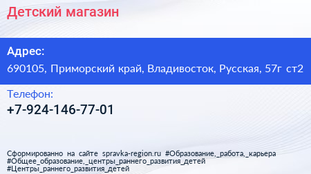 Детский магазин по адресу 690105, Приморский край, Владивосток, Русская, 57г ст2 в дальнейшем Организация, размещена в следующих категориях: