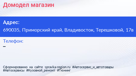 Домодел, магазин по адресу 690035, Приморский край, Владивосток, Терешковой, 17в в дальнейшем Организация, размещена в следующих категориях: