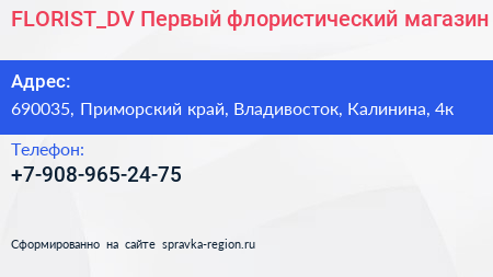 FLORIST_DV. Первый флористический, магазин по адресу 690035, Приморский край, Владивосток, Калинина, 4к в дальнейшем Организация, размещена в следующих категориях: